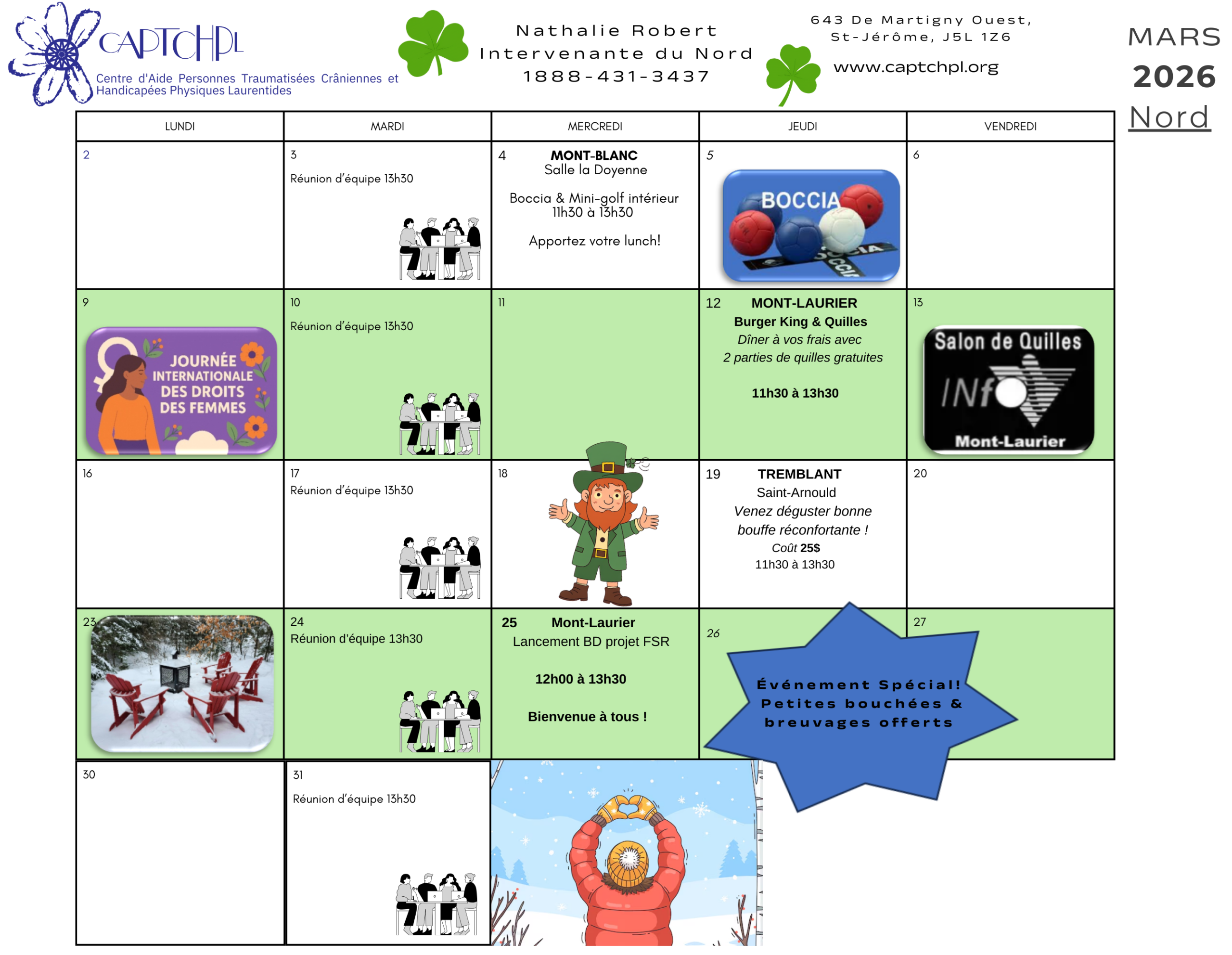 Calendriers de mars 2026